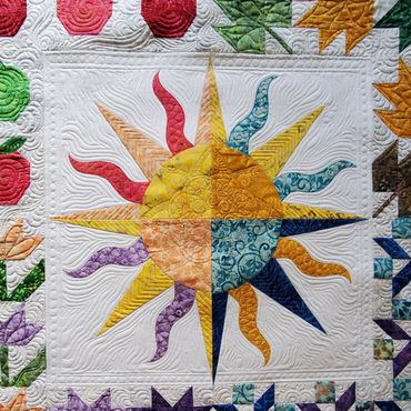 Lots of free motion and ruler work designs here to fill this lovely floral panel.